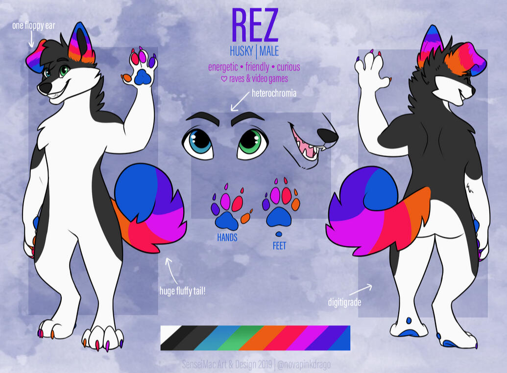 Includes name, species, and pronouns and/or gender, 2 point view, mouth, paw, and eye detail, and color palette. Additional views or callouts must be quoted for an additional fee.All art is custom and drawn to order.